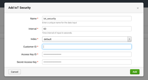 Create IoT Security Input and add Key to Splunk